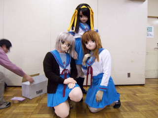 | 今年初の即売会、長門祭「大好き」へサークル参加してきましたー。 前日の夜にみずたにさんの家へ集合するため、早めに上京を開始する。 (80×60のサイズで表示。クリックで別窓320×240のサイズで表示) 久々の新幹線。 ぷおーん。 久しぶりの700系。 一緒に乗り込んだ外国の人が優しくて、棚に荷物がいっぱいでHOSOnの荷物を上げれなかったんですよ。 そしたら 「荷物を上げましょうか?」 って声を掛けられたのよ。 「まぁ、重いからいいですよ(娘が入っているからなっ!)」 って断ると、違う席の棚を指差して 「あそこ、空いてますから、上げましょうか?」 その後も「学生さん?」「東京行くの?」とか話しかけられた。 まぁ途中でHOSOnが寝ちゃったんですけどね。 集合場所の蕨駅に行くと、みずさん、渡来さん、らきさん、NOCHIさんと合流。 その足で鍋の具を買って、みずさん家に到着。 鍋できたー。(HOSOnは座っていただけですが……) いただきますー。 十分お腹もいっぱいになってNOCHIさんが帰宅。 しばらくマターリしたあとに、明日のイベントのために長門の猛特訓が始まる。 写真はみずさん、らきさん、渡来さん。 立ち姿から視線の合わせか方などを深夜まで指導してもらいました。 その成果をご覧ください。 どんなもんでしょうか? 明けて21日イベント当日。 みずさんの家の近所の美味しいパン屋で朝食。 電車に揺られて浜松町の都産貿に到着。 途中で「大好き」の隣で開催される「じゅ〜すぃ〜」に参加されるかっきーさん、HAMATOSIさん、じぇみぃさんたちと出会う。 HOSOnたちはサークル入場なので一足お先に中に入る。 衝立一枚向こう側は「じゅ〜すぃ〜」(w まぁ、即売会でのHOSOnの有名なジンクスとして「隣のサークルは来ない」ってのがあるんですが……、今回もダミーサークルか? 深くは言いませんが。 こちらとしては荷物が置けて嬉しいのですけどねー。 さて、今回のWONDROUS pharmacyは涼宮ハルヒ(みずたに)、朝比奈みくる(しるふぃ)、長門有希(HOSOn)でお送りしております。(w で、これに渡来さんを加えると大所帯になってしまうので、無理をお願いしてくっつり会さんに午前中はみくる、午後はハルヒを売り子に出張させていただきました。 ありがとうございました。 昼頃は眠くなったけど、昼を過ぎるとパッチリと目が覚めた。 これがウワサに聞く着ぐるみハイか!?(w 午後の入場オープンになってから「じゅ〜すぃ〜」に寄って、三銃士と遊んだり。 イベント終了後にくっつり会さんに撮ってもらいました。 背後にものすごくアクティブに動く人が写り込んでいるがキニシナイ。(w ほかにレイヤーさんとの写真もあるけど、まだもらっていないのでとりあえずこれだけ先にアップ。 掲載許可はいただいているので手元に届き次第更新しますー。 イベント終了後、真紅党員さんとサトさんと一緒に浜松町駅近くの高そうな喫茶店で喋る。 そこで解散してHOSOnは帰路に旅立つのでありました。 またしても二郎に行けず……。 だいたいいつもなら帰りの新幹線は横浜を通過する頃には寝ちゃうんだけど、今日は寝れるハズがないっ! 楽しい記憶を反芻しながら名古屋に帰ってきました。 まぁ、参加費を回収するぐらいしか売れなかったけど、楽しかったからいいや。(w |