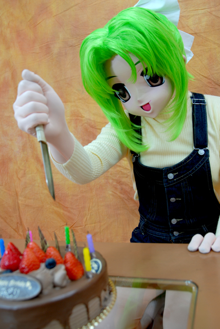翠さんの誕生日です。 お祝いに白河ことりさんと向坂環さんがお祝いに駆けつけてくれましたー。 (サムネイルをクリックで別窓拡大表示) わーい。 じゃ〜ん! バースディ・ケーキッ!! 『ハッピーバースディ みどり』 誕生日おめでとーーー! おめでとーおめでとー。(パチパチパチ) ことりさんからプレゼントですー。 ありがとー。 では、ケーキを切りますーーー。 それっ!違うっ!! あ、包丁でしたね。 持ち方違うっ!! なんて、ジョーダンですよー。 ケーキぐらい簡単に切れるんですからー。 というワケで、全員にイチゴが行き渡るように綺麗にカットしてくれました。 いたーだきーまぁ…… 熱い視線を感じます。 タマ姉が食べさせてくれるみたいです。 はい、あ〜ん。 世の中そんなに甘くありません。 え〜、そんなぁ……。 でも、みんな仲良く。 みどりん、誕生日おめでとーっ! 撮影会に続く。 |