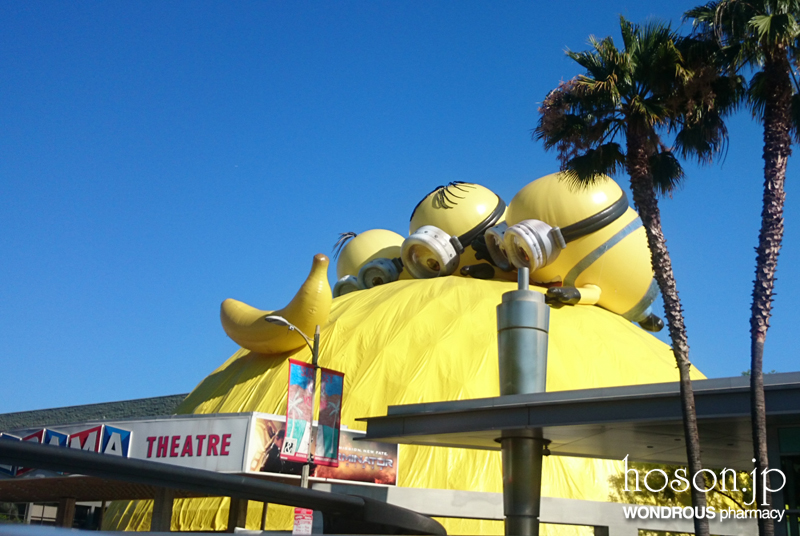 ![]() それにしても日差しが違うので、空の青さが目に沁みますっ! ちょっとロサンゼルス郊外まで移動してきました。 ![]() ミニオンズ専用の映画上映場。 やってきましたIn-N-Out Burger!! よく映画に出てくるハンバーガー屋さんです。 ![]() 大きい駐車場がいつでも満車です。 大人気! そしてこのボリュームである!